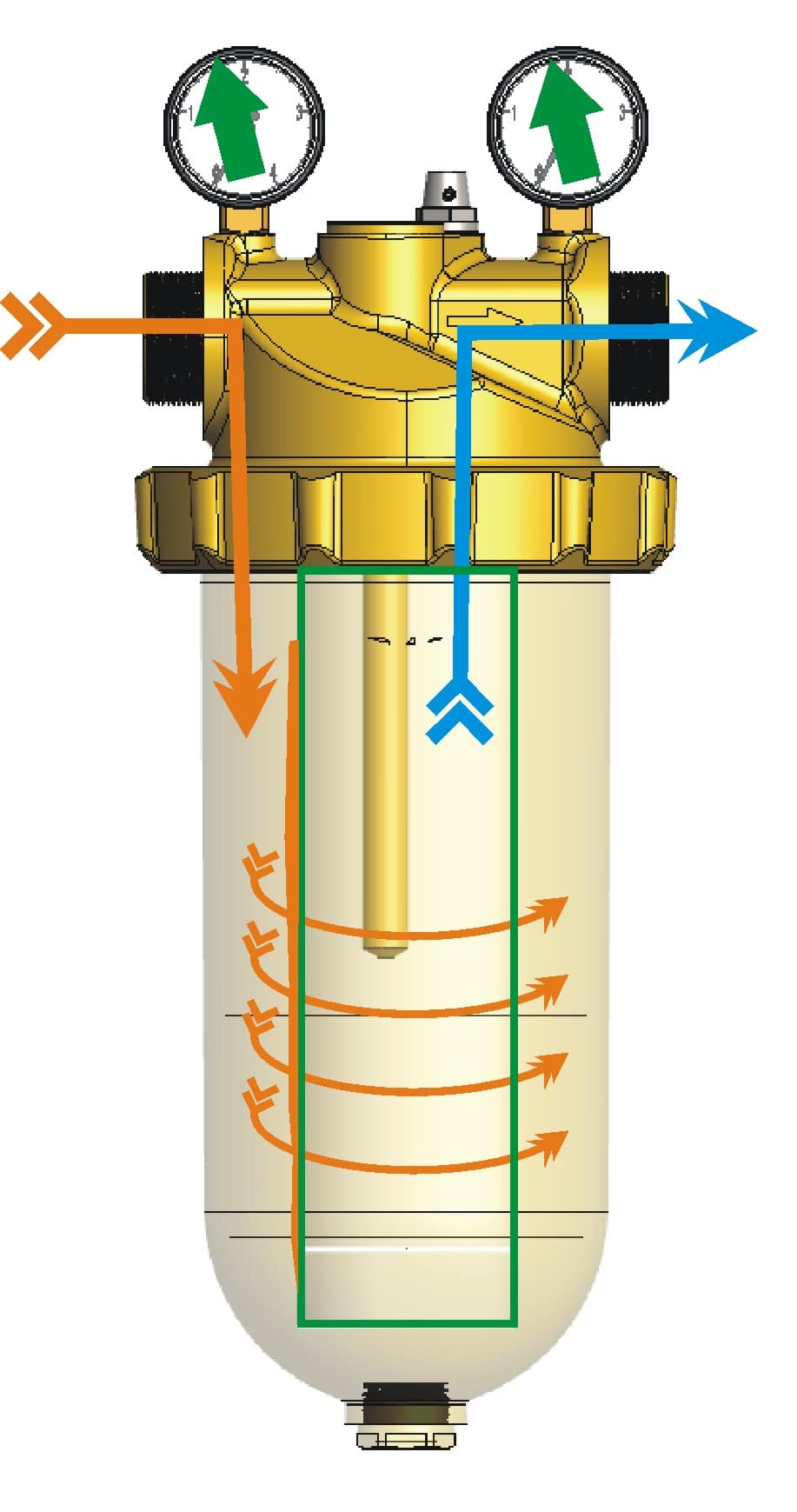 - Großer Messing-Filterkörper, um Reinigungsintervalle zu verlängern, Filterschlüsel natürlich um Lieferumfang