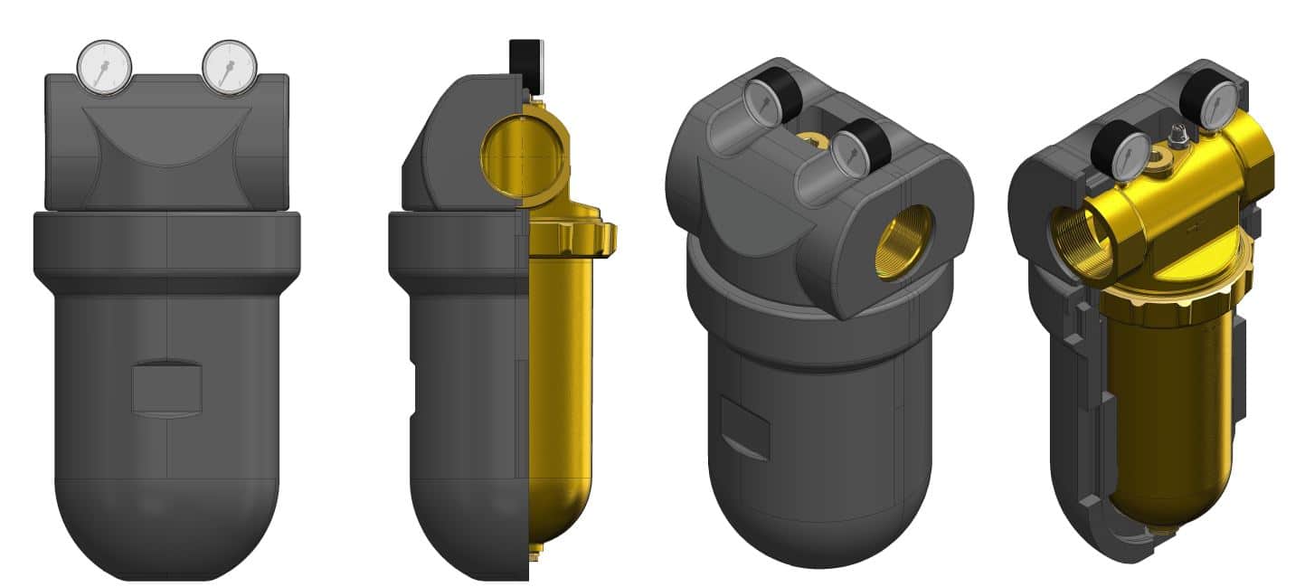 Großer Messingfilter von 1″ bis 2″, Filterkerzen von GANZ fein (25µm für Sonderreinigung) bis „etwas gröber“ (500µm für größere Anlagen)
