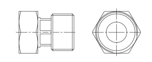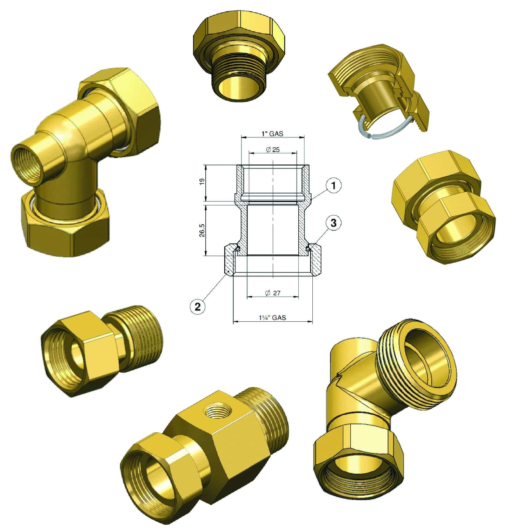 z.B. ¾“ Überwurfmutter auf Außengewinde in ¾“AG
